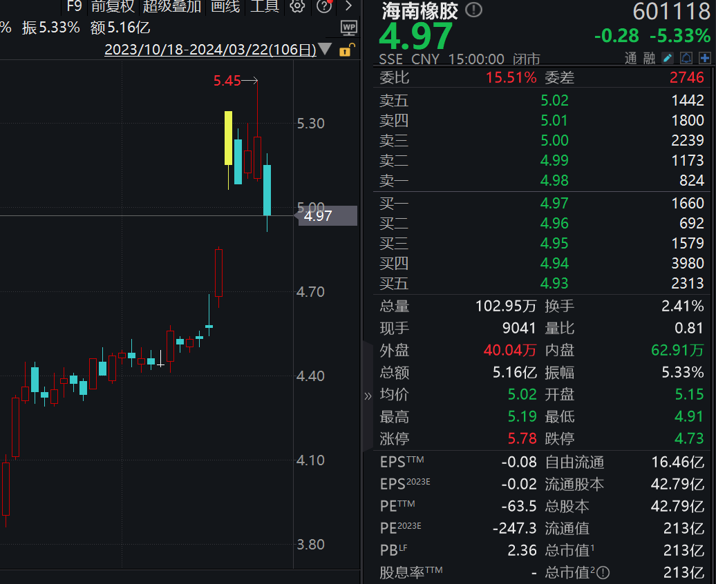 此外,A股市场上,海南橡胶等橡胶企业跟随期价波动,3月22日也出现了大幅下跌。