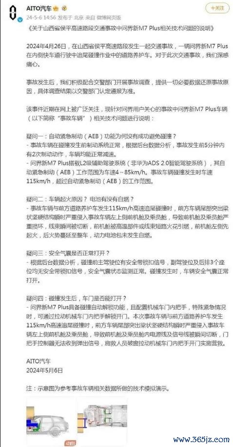 惠州正规股票配资平台 AITO汽车回应问界新M7 Plus山西高速事故四大技术疑问